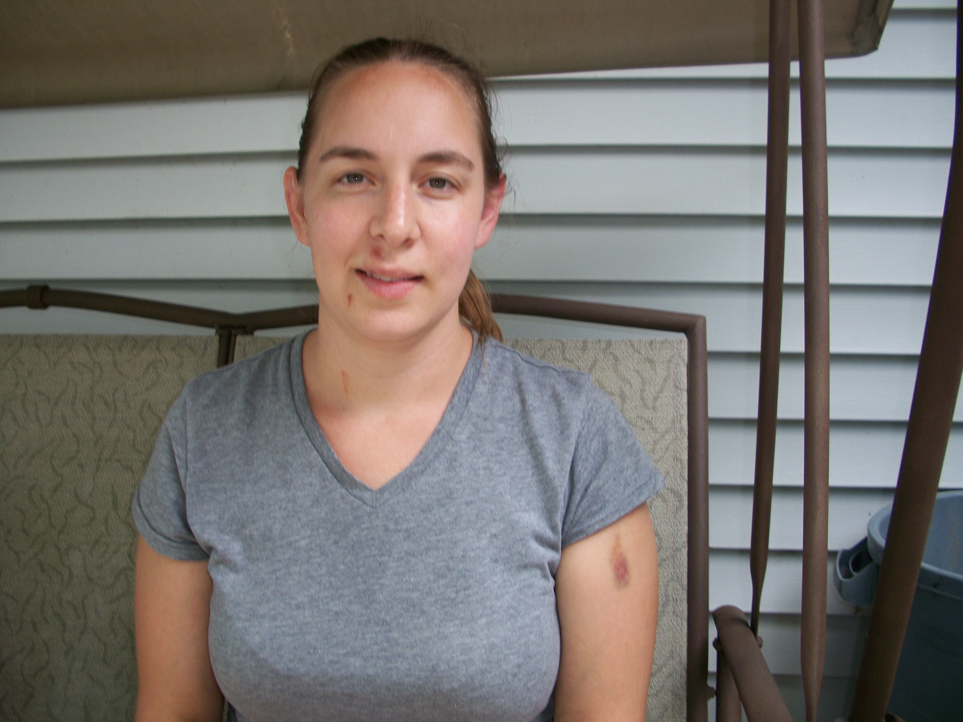My lip is swollen and bloody inside my mouth also. But the worst injury is my tailbone. I can’t sit hardly at all, I have to either stand or lay.