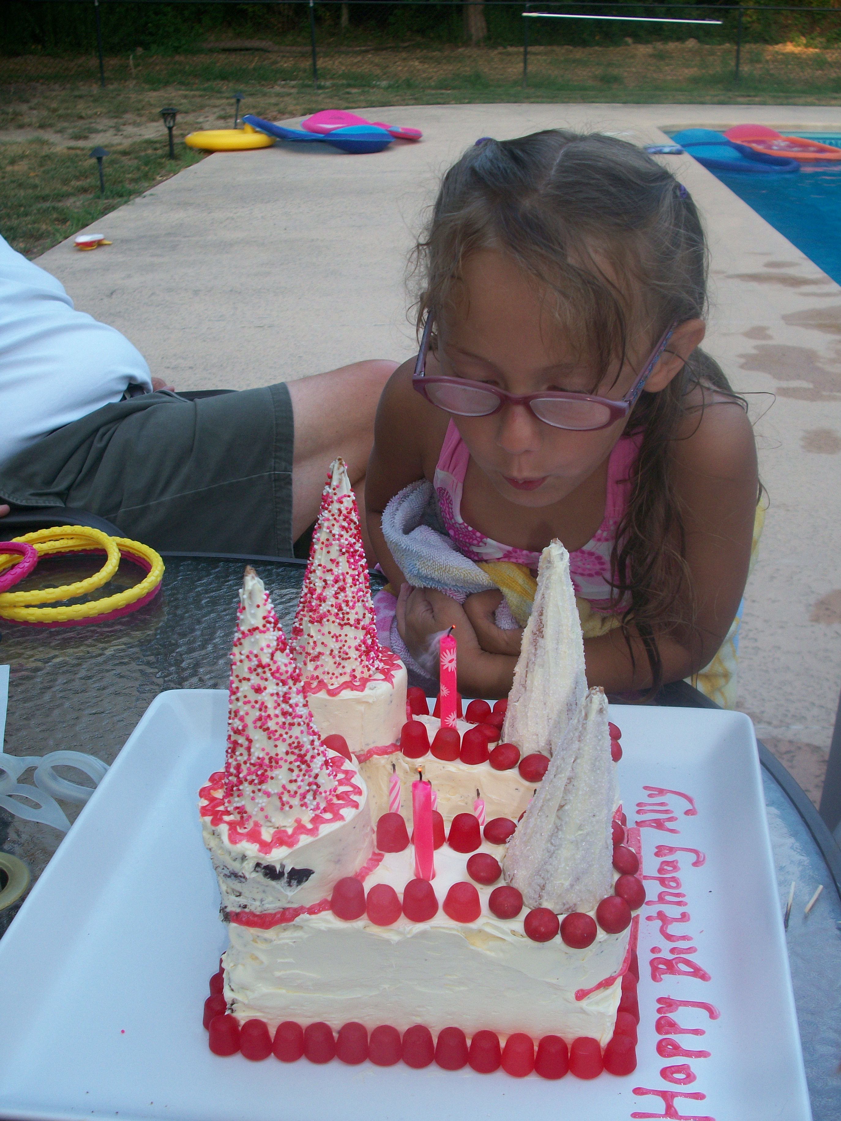 Told her to get in the car, she fell asleep on the way to Grandma’s house where the cousins were staying for the night. She got to swim with the cousins, eat pizza, open presents and tear into her cake. She said “it was the best birthday ever”.