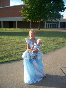 As part of Ally’s Birthday we got tickets to a performance of Roger and Hammerstein’s Cinderella. Grandma, Aunt Linda, and the cousins, all went. We had dinner at Panera. When we got to the theater Ally dressed up in her Cinderella Dress.