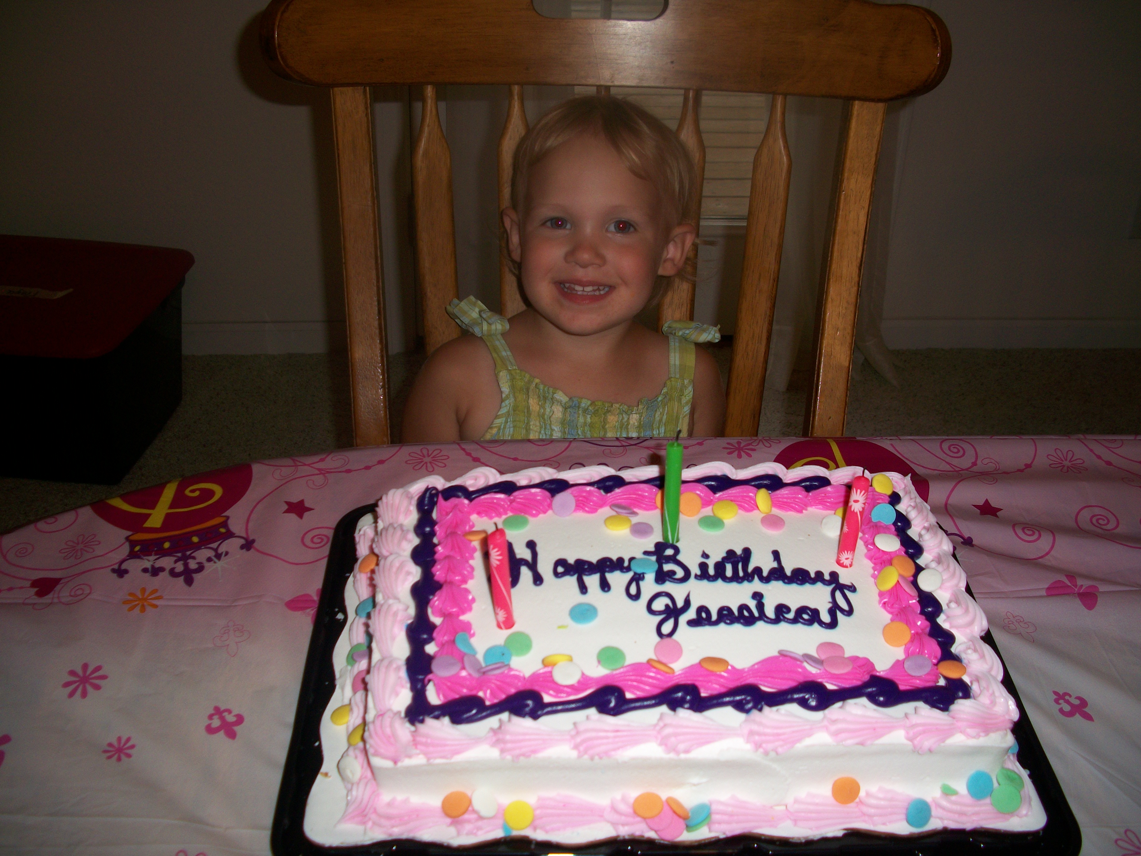 My Jessie girl turned three today. It seems like just yesterday my bald little baby girl was crawling around on the floor underfoot. Jessie has such a strong personality. She is strong willed, but can be oh so sweet. She very much wants to help and please. The other day she helped Grandma do some cooking. Later she went shopping just her and Grandma. I told her she needed to be a good girl and obey Grandma. She says “I won’t hit Grandma, I pwomise.” Well you better not hit Grandma, but I need to you do what Grandma says and obey her ok “I won’t hit Grandma, I pwomise”. She had a great time shopping and she held up her promise.