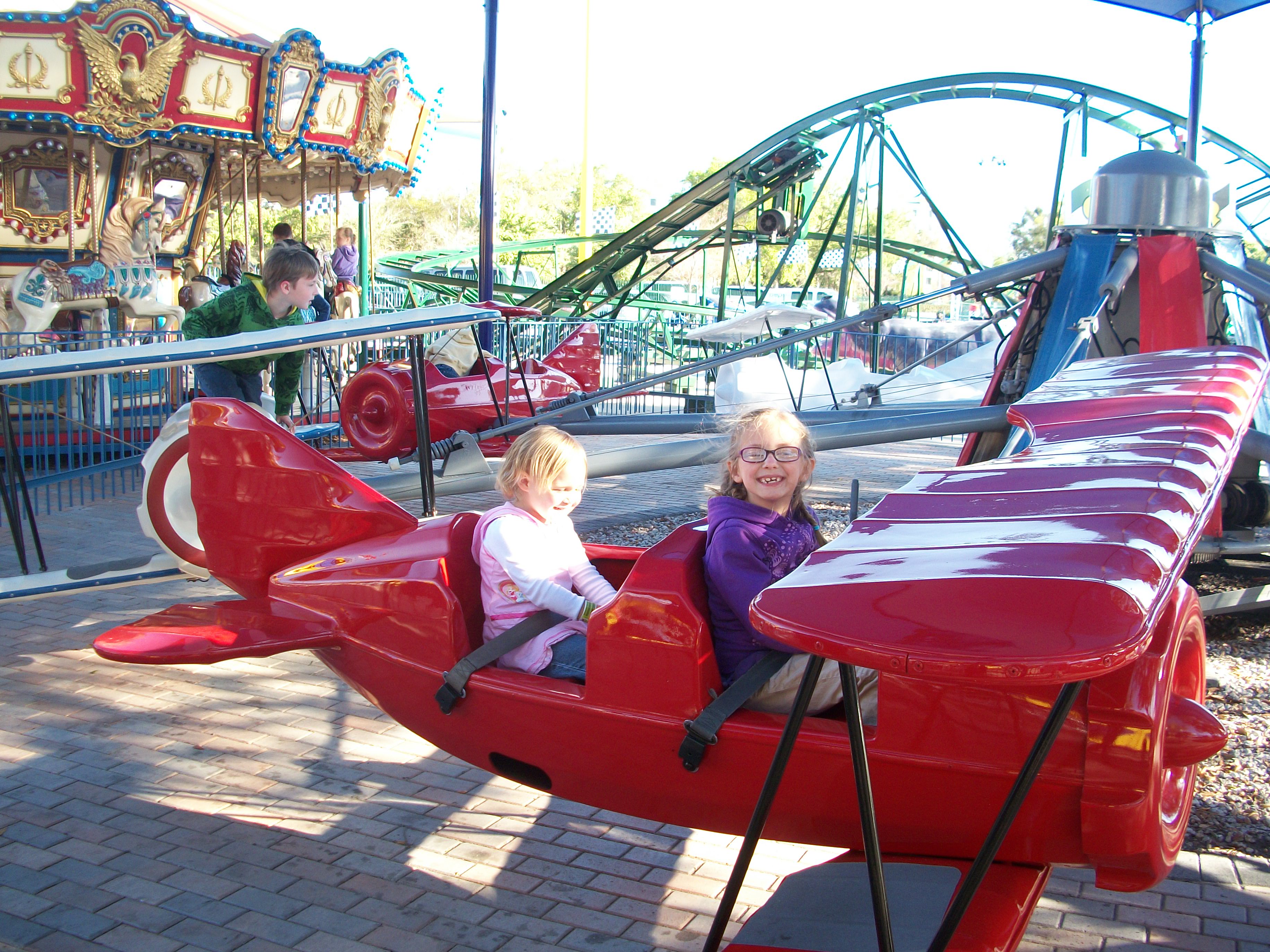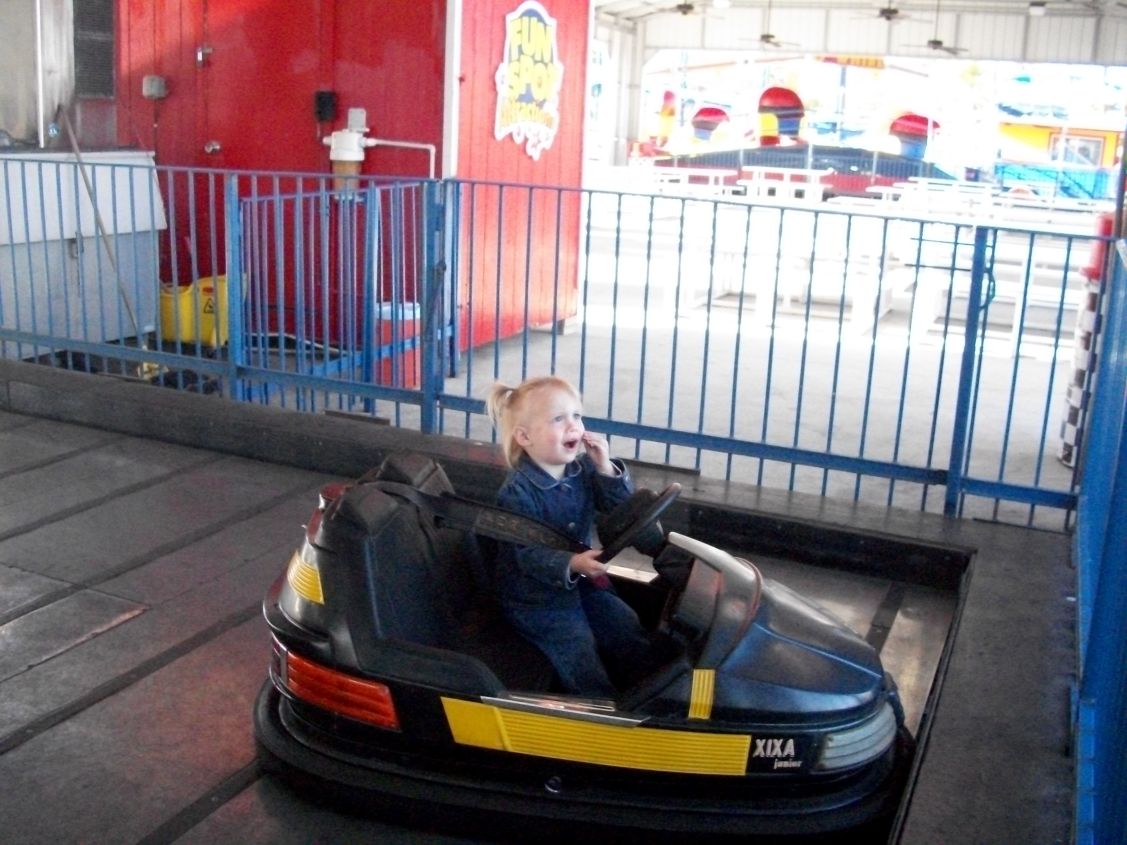 Fun Spot USAJess and Mark on go carts, she was so excited, but then so terrified.Grandma, Jess, and TeaganHaving fun FlyingMerry go roundHaving funJess and Tim on the kids roller coaster, he is a daredevil, and she was willing to try anything that day.Cruising in a convertibleOut for a rideEnjoying the flightFlying highBumper cars!Ready set go…Had to go with the big kids and not his siblingsTeagan did not like getting bumped into, she is pointing at Ally for bumping into her.Jess was having a blastShe got mad at the wall, which she bumped into.
