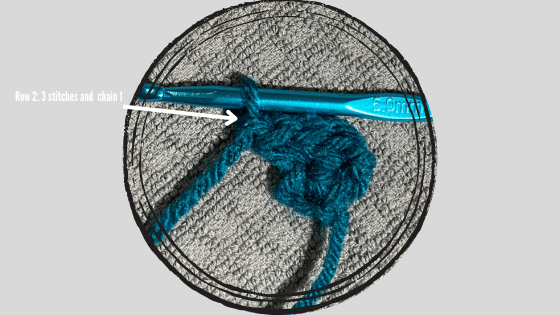 Row 3: 1 sc in first two st. and 2 sc in the last st, ch 1 and turn.