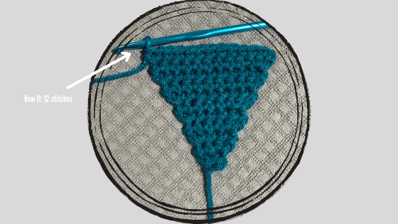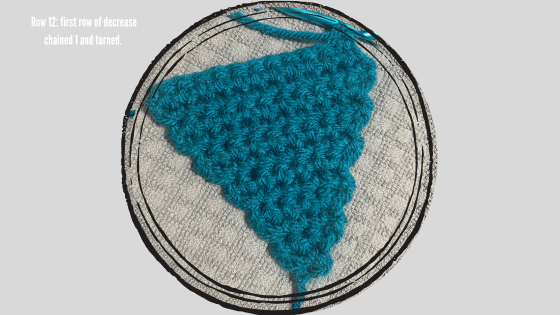 Repeat until you reach a row with only two stitches, ch 1 and turn your work.