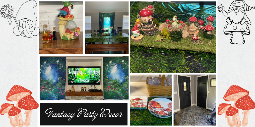 My girl loves the fantasy world. She loves reading, and playing video games that are fantasy based. So it was no surprise when she said she wanted her party to be fantasy themed. That’s a very broad world though so we narrowed it down to her current favorites which are mushrooms and dragons, right now. We have a large extended family so for the most part just stick to a family party.