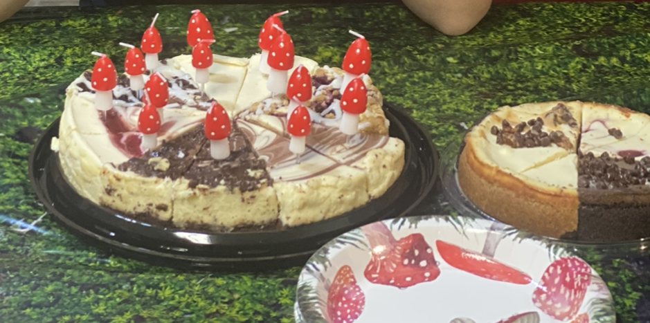 She wanted cheesecake for desert and we found these fun mushroom candles to go on the cake.