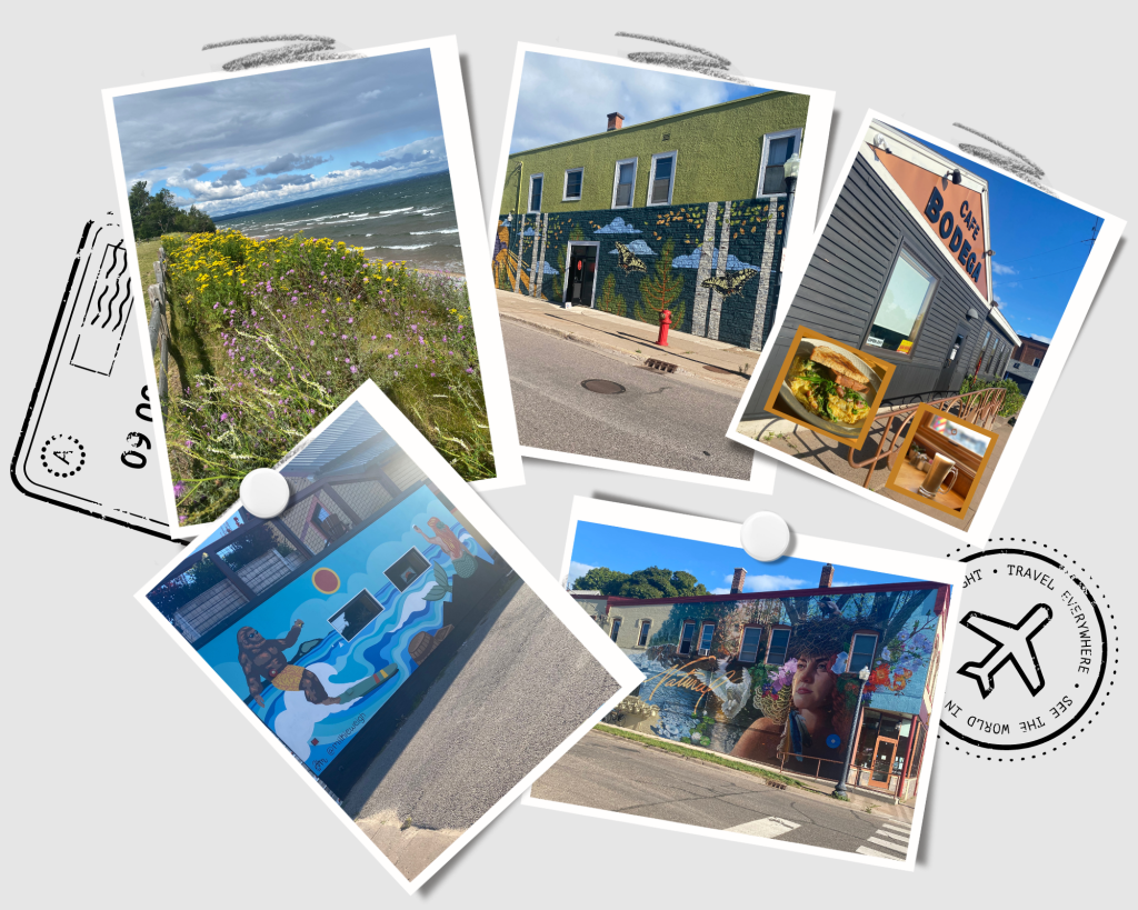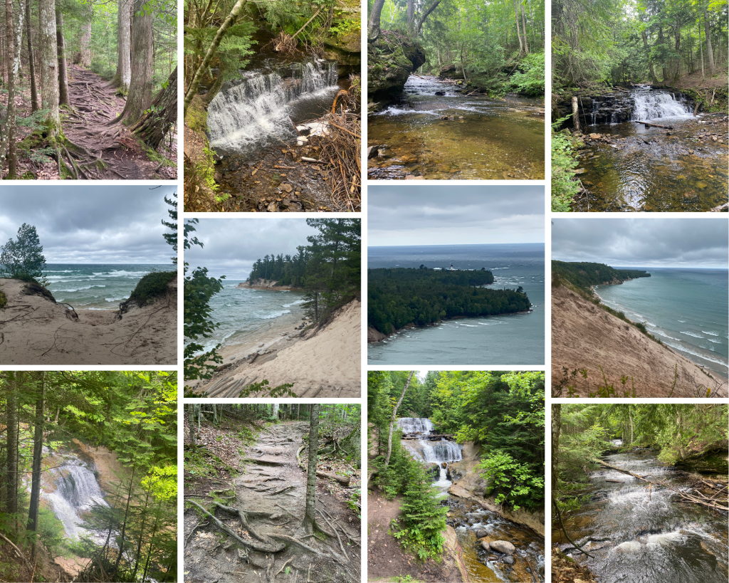 Our hotel was in Marquette, MI, so we had breakfast there. We ate at a wonderful little cafe called Bodega. The food was made from scratch, locally sourced and delicious. I highly recommend it if you find yourself in the area. We wandered around a little bit, there were lots of murals around the area. We hit the road after our walk and drove the shoreline of Lake Superior to Munising MI. The drive was beautiful, at times it was the lake, at times the forest.