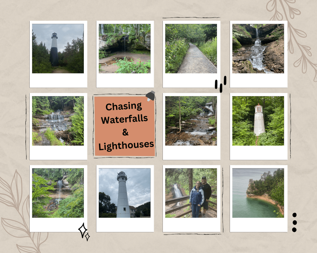 We decided to chase waterfalls and lighthouses through Pictured Rock National Parks. So we headed back to Munising with a map. The GPS was not reliable so we had to go old school. It was so much fun, and so beautiful.